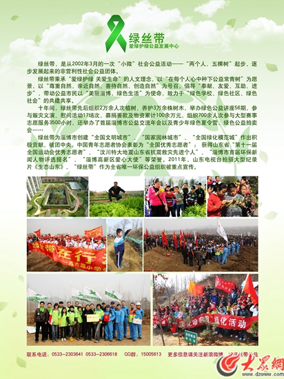 十年間,綠絲帶先后組織2萬(wàn)余人次,植綠、養(yǎng)護(hù)3萬(wàn)余株樹木,舉辦綠色公益講座56期,參與賑災(zāi)義演、慰問(wèn)活動(dòng)17場(chǎng)次,募捐善款及物資累計(jì)100余萬(wàn)元,組織700余人次參與大型賽事志愿服務(wù)3500小時(shí),舉辦了首屆淄博市公益交流年會(huì)以及青少年綠色夏令營(yíng)、綠色公益拍賣會(huì)……