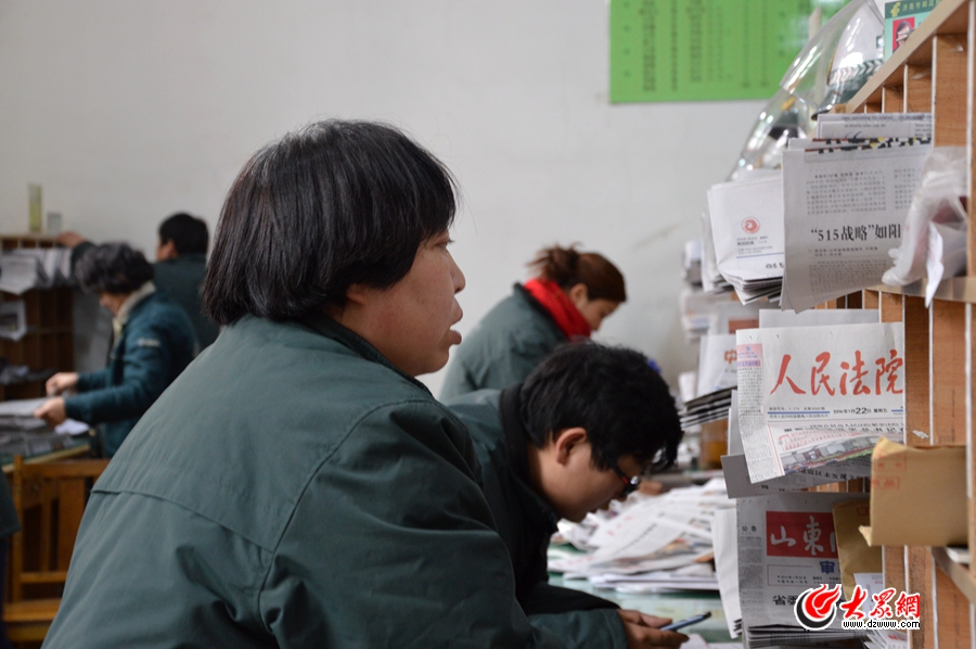 郵遞員們緊張地分發(fā)報(bào)紙,準(zhǔn)備出發(fā)。(記者 王宗陽 攝)