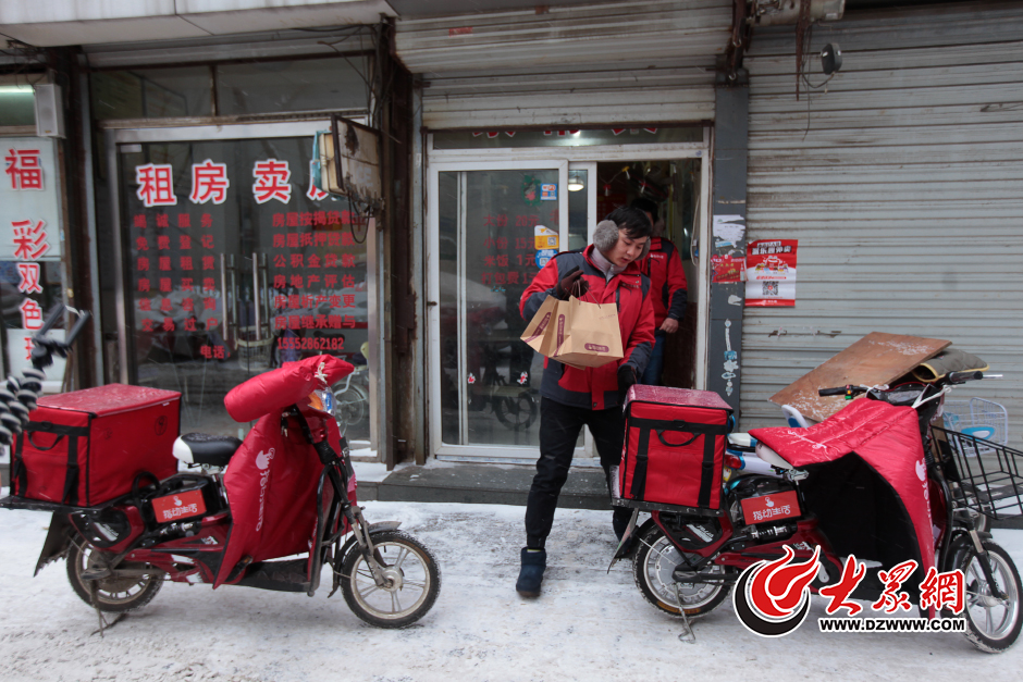 寒風(fēng)大雪中的“外賣小哥”:走不好滑一跤,凍得搓手又跺腳