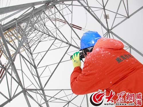 威海供電公司線路巡視人員冒雪對主網(wǎng)輸電線路進(jìn)行巡視