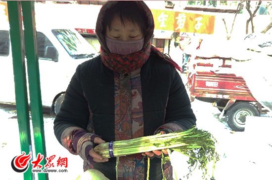 23日,濟南迎來“45年以來最低氣溫”,白天最高氣溫在—9℃。今天上午,記者在濟南市市中區(qū)一處賣菜攤位,跟攤主張先生一起賣菜。記者雖然“全副武裝”,穿上了棉褲棉鞋,但僅僅在攤位站了半個小時,雙腿雙腳已被凍得麻木。攤主張先生告訴記者,雖然這兩天菜價飆升,但買菜的人少了很多,再加上蔬菜被凍壞的損失,一天比平常得少賣500塊錢,僅相當于平常的一半。