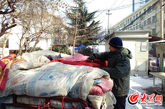 老張告訴記者,為了防止蔬菜被凍壞,運菜的貨車鋪了四層棉被,還用上了8個保溫箱,把蔬菜放到保溫箱里,再蒙上一層塑料,之后,再鋪上五六層棉被。老張說:“平常就用兩三條棉被就可以,今天用了10條,還用上了保溫箱,但還是有蔬菜被凍壞了。”