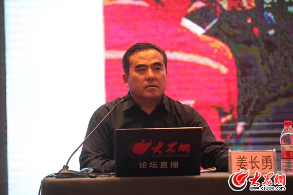 山東省互聯(lián)網(wǎng)傳媒集團(tuán)副總經(jīng)理、山東大眾信息產(chǎn)業(yè)有限公司董事長、大眾輿情中心首席專家姜長勇發(fā)表主題演講。
