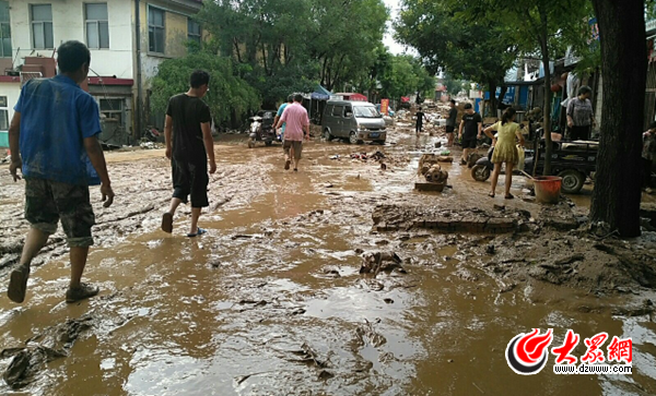 20日上午,大眾網(wǎng)記者趕赴青州市王墳鎮(zhèn)西股村現(xiàn)場途中,路過青州市王墳鎮(zhèn)大峪口村村口,發(fā)現(xiàn)這里依然水勢洶涌