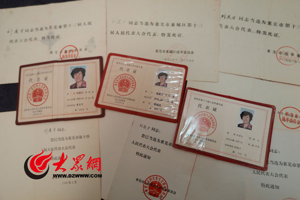 在劉英才隨身攜帶的手提袋里,有一個(gè)不起眼的牛皮紙信封。打開信封,里面是厚厚一疊證書。這是她歷次當(dāng)選人大代表的證書和代表證,一張張攤開來(lái),足足能擺滿一張書桌。