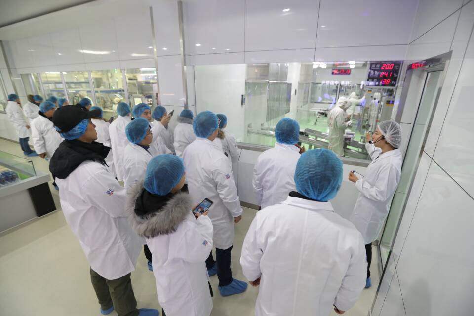 采訪團參觀圣元營養(yǎng)食品有限公司的生產(chǎn)車間。