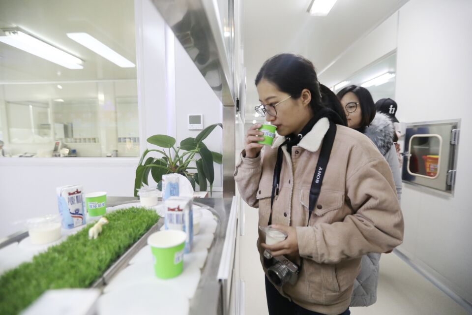 采訪團記者品嘗圣元營養(yǎng)食品有限公司的產(chǎn)品。