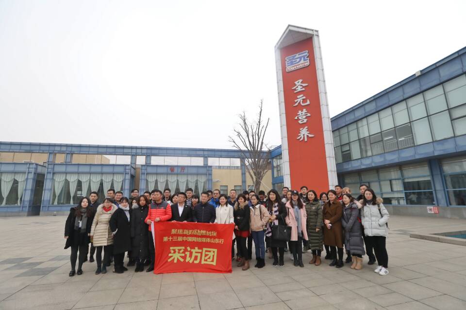 第十三屆中國網(wǎng)絡媒體山東行采訪團在圣元營養(yǎng)食品有限公司合影留念。