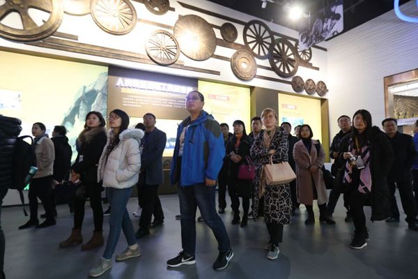采訪團成員參觀重汽汽車博物館。
