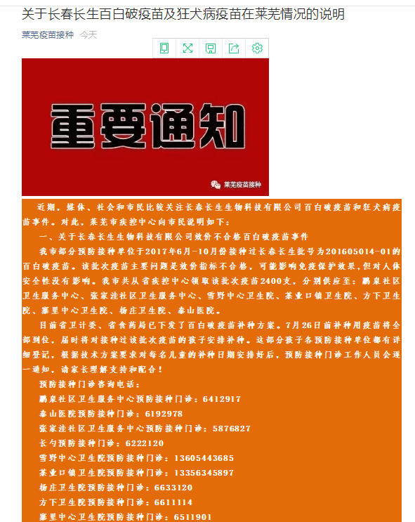今天下午,大眾網(wǎng)記者剛剛從萊蕪疾控中心微信公眾號獲悉,7月26日前補(bǔ)種用疫苗將全部到位,屆時將對接種過該批次疫苗的孩子安排補(bǔ)種。