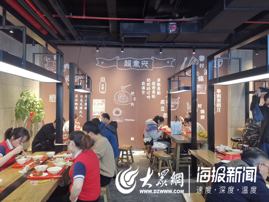 大眾網(wǎng)·海報(bào)新聞濟(jì)南11月16日訊(記者 梁雯 張建) 肥瘦相間、色澤金黃、長17到18厘米、厚1.2厘米、重約100克……每天,同樣口味、同樣重量的5萬塊把子肉,會從400多家超意興快餐門店里,進(jìn)入山東人的飯碗。作為一家有著百年歷史的老字號餐飲連鎖店,超意興的“大米干飯把子肉”早已成為山東的特色飲食之一。超意興線下門店的日均客流量現(xiàn)在也已超過30萬。雖是老字號,超意興卻正變得越來越“新”,有了不少“新”變化、“新”發(fā)展。