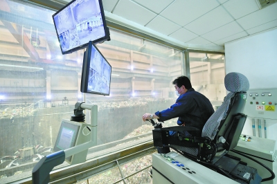 昨天(25日),在首鋼生物質(zhì)能源科技有限公司焚燒廠房,工作人員正在進行垃圾處理。記者 方非攝
