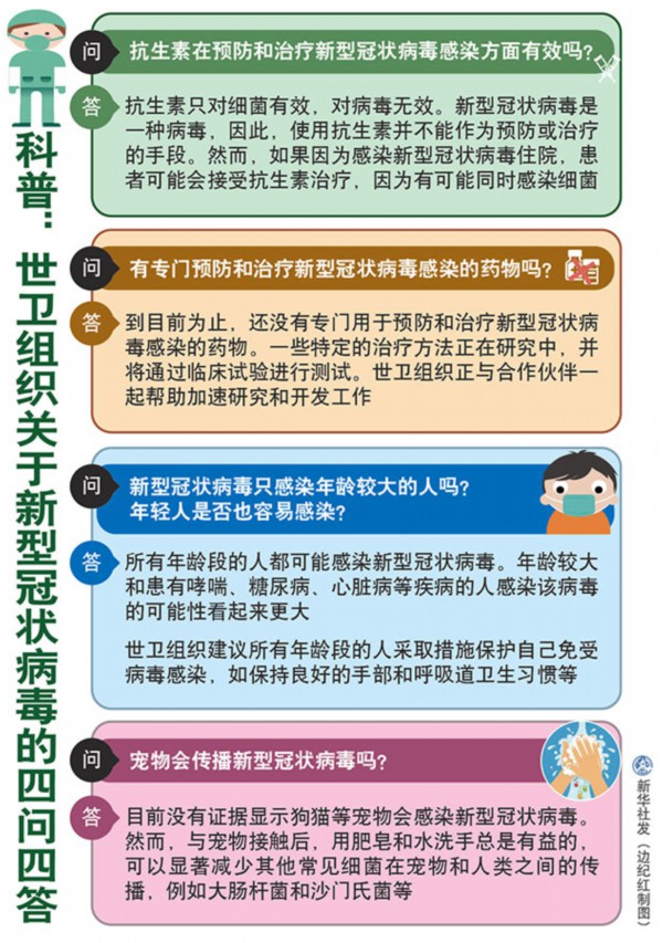 新華社北京2月2日電 面對當(dāng)前新型冠狀病毒感染肺炎疫情,世界衛(wèi)生組織近日在其官方網(wǎng)站,回答了公眾普遍關(guān)心的“抗生素在預(yù)防和治療新型冠狀病毒感染方面有效嗎”等四個問題。新華社記者梳理如下。
