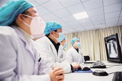 湖北省秭歸縣人民醫(yī)院新冠肺炎醫(yī)療救治專(zhuān)家通過(guò)遠(yuǎn)程連線對(duì)患者進(jìn)行會(huì)診。新華社發(fā)