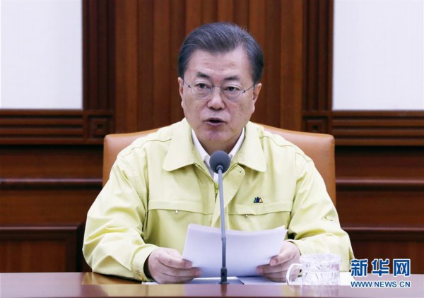 2月23日,在韓國首爾,韓國總統(tǒng)文在寅在新冠肺炎對策會(huì)議上講話。 新華社/紐西斯通訊社