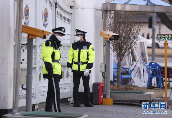 2月23日,警察在韓國首爾中央政府大樓外執(zhí)勤。 新華社記者 王婧嬙 攝