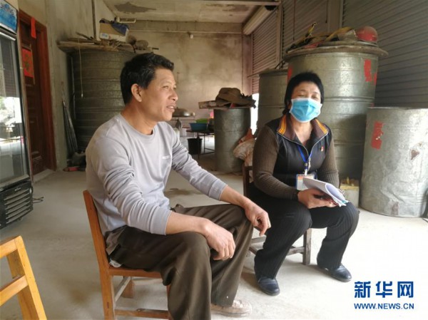 欽州市欽北區(qū)大寺鎮(zhèn)南間村第一書記黃境紅(右)到建檔立卡貧困戶黃秀加家走訪(2月22日攝)。 新華社記者 何偉 攝