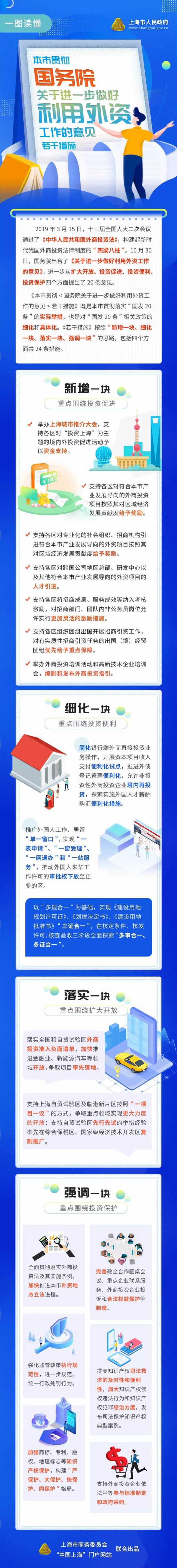 據(jù)悉,新出臺的措施是按照“新增一塊、細化一塊、落實一塊、強調(diào)一塊”的思路展開。其中,“新增一塊”包括舉辦上海城市推介大會,支持各區(qū)對“投資上!睘橹黝}的境內(nèi)外投資促進活動給予資金支持。