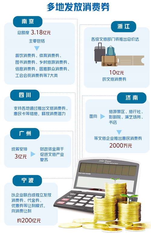 為了有效應(yīng)對疫情對消費的影響,各地區(qū)各部門相繼出臺了擴大消費的政策措施,發(fā)放消費券就是其中一項重大舉措。在南京,預(yù)計將發(fā)放總額3.18億元的消費券;在濟南,推出2000萬元文旅消費券;在江西,發(fā)放1000萬元旅游電子消費券;在寧波,也將推出大額消費券……