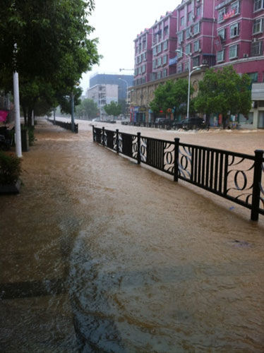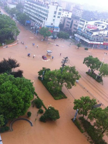受“海葵”影響,8月9日6時(shí)至10日6時(shí),江西景德鎮(zhèn)市遭遇特大暴雨,平均降雨量達(dá)155.5毫米。暴雨導(dǎo)致景德鎮(zhèn)市區(qū)內(nèi)澇嚴(yán)重,部分交通癱瘓。很多景德鎮(zhèn)網(wǎng)友在微博上曬市區(qū)內(nèi)澇照片,網(wǎng)友戲稱:歡迎來到“水上威尼斯”,同志們,景德鎮(zhèn)又可以“看海了”。