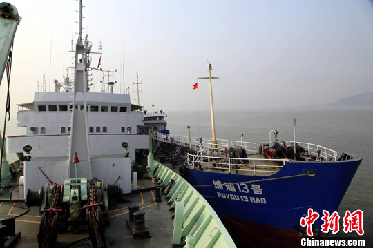資料圖:8月7日,中國科學院南海海洋研究所“實驗3”號綜合科學考察船在航行途中進行燃油補給。中新社發(fā) 孫自法 攝