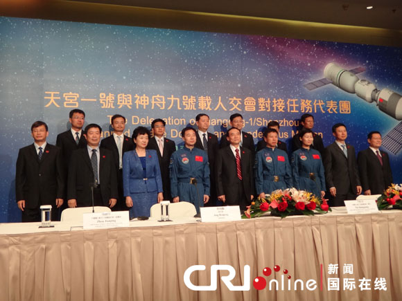 當(dāng)天下午,代表團(tuán)團(tuán)長、中國載人航天工程副總指揮牛紅光,中國載人航天工程總設(shè)計(jì)師周建平,以及神舟九號三名航天員景海鵬、劉旺、劉洋與香港媒體見面。