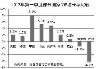 王小廣:有些悲觀主義者特別看空中國,實(shí)際我們相對(duì)于世界其他國家還是好的。今年上半年,世界工業(yè)生產(chǎn)反彈受挫,貿(mào)易繼續(xù)走弱,消費(fèi)趨向低迷,就業(yè)市場(chǎng)復(fù)蘇遭遇挫折,各主要經(jīng)濟(jì)體經(jīng)濟(jì)增速普遍明顯放緩。一季度,美國GDP環(huán)比增長(zhǎng)1.9%,預(yù)計(jì)二季度環(huán)比增長(zhǎng)1.6%;歐元區(qū)一季度GDP環(huán)比零增長(zhǎng),預(yù)計(jì)二季度環(huán)比下降0.3%;日本一季度GDP環(huán)比增長(zhǎng)1.2%,預(yù)計(jì)二季度環(huán)比增長(zhǎng)0.2%。不僅發(fā)達(dá)經(jīng)濟(jì)體困難重重,就連新興經(jīng)濟(jì)體也出現(xiàn)較大起伏。