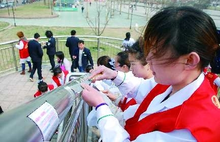 經(jīng)十路槐苑廣場一過街天橋,橋身上竟然貼有300多處野廣告,36名百姓城管用了一整天才將大部分小廣告清理完畢。