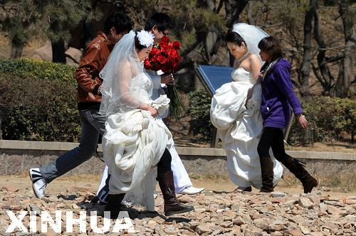 新華網(wǎng)山東頻道4月6日電 隨著氣溫回暖,山東青島海濱婚紗照拍攝生意又開始忙碌起來,前海一線各景區(qū)內(nèi)隨處都能見到正在拍攝或匆匆趕往下一拍攝點的新人。據(jù)了解,以親近大海為主題的婚紗照每年都會吸引來眾多的顧客,已在當?shù)匦纬杉囆g(shù)照拍攝、蜜月旅游、集體婚禮等一條龍服務完整的產(chǎn)業(yè)鏈。
