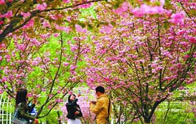 “滿枝櫻花戲春風,微微舞動香誘人”。時下,濟南植物園內櫻花綻放,白的似雪、粉的如霞,吸引了大批游客前來賞花聞香。(呂傳泉 郝迎久 攝)
