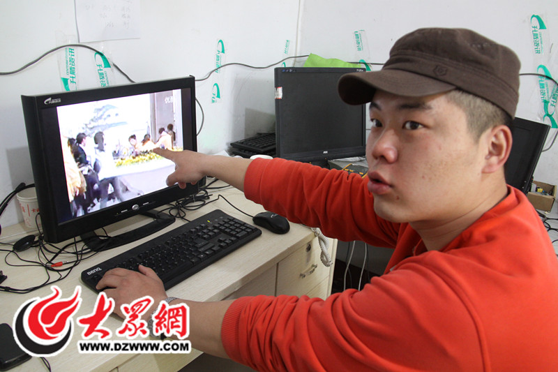 仲毅指著電腦播放到視頻告訴記者,被追打著正是他本人。