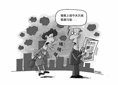 北京近期大霧頻發(fā),官方空氣污染數(shù)據(jù)遭質(zhì)疑。漫畫:徐駿