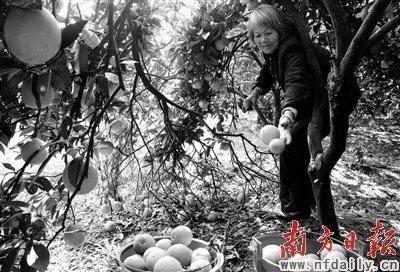 11月25日,湖南省新寧縣飛仙橋鄉(xiāng)戴家村65歲的鄧大媽開(kāi)始開(kāi)園采摘臍橙。 新華社發(fā)