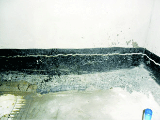 紫潤(rùn)明園保障房項(xiàng)目南區(qū)16棟一樓住戶陳先生家衛(wèi)生間墻體上的裂縫。