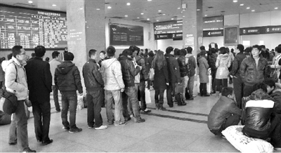 [提要] 當(dāng)天,在鄭州火車站售票大廳,記者看到,整個大廳30多個窗口前都排著長隊,均超過了20人,最長的隊伍有近百人,已經(jīng)排到了大門口。按照鐵道部最新修訂的《鐵路旅客運輸服務(wù)質(zhì)量標(biāo)準(zhǔn)》要求,各車站要開啟數(shù)量充足的售票窗口,日常購票排隊等候不超過20人。