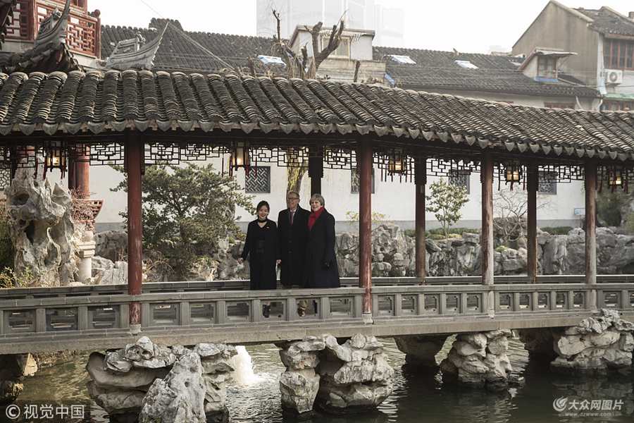 2018年2月2日,英國首相特蕾莎·梅在上海訪問,跟丈夫菲利普一起游覽豫園。