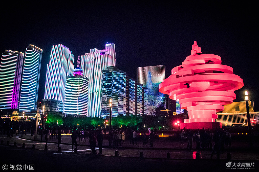 青島五四廣場開啟炫美模式 燈光璀璨成新晉“網紅” (/)