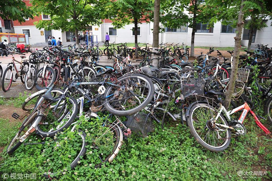 2018年5月22日,山東青島某高校,隨著畢業(yè)季來臨,不少大四畢業(yè)生開始打包處理自己的物品,而不少同學(xué)卻遺忘了大學(xué)期間購買的自行車。