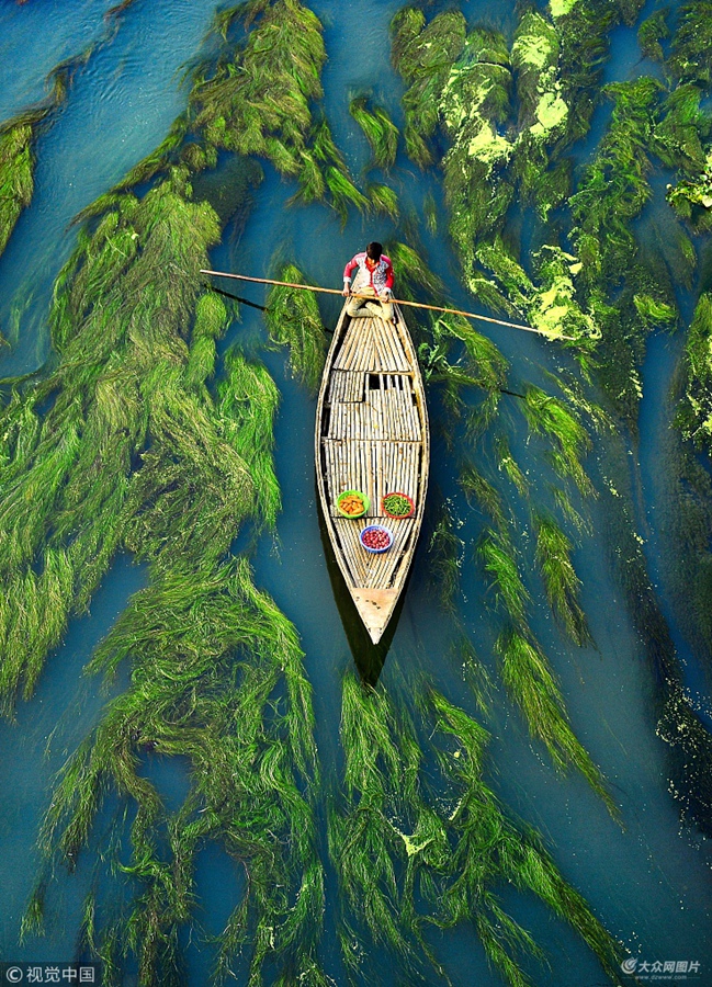 當(dāng)?shù)貢r間2018年5月23日,孟加拉博格拉縣戈羅多亞河,27歲的攝影師Abdul Momin站在橋上拍景。船上的人都是當(dāng)?shù)鼐用,?jīng)常通過這條河前往村里的集市和其他地方。