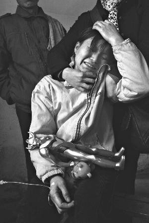 28日,墜河事故中遇難的王磊的母親悲痛不已。郭國(guó)權(quán) 攝