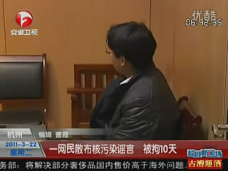 3月20日,杭州市公安局西湖分局作出處罰決定,依法給予在網(wǎng)上散布日本核電站爆炸污染山東海域謠言的杭州網(wǎng)民陳某行政拘留10天,并處罰款500元人民幣。