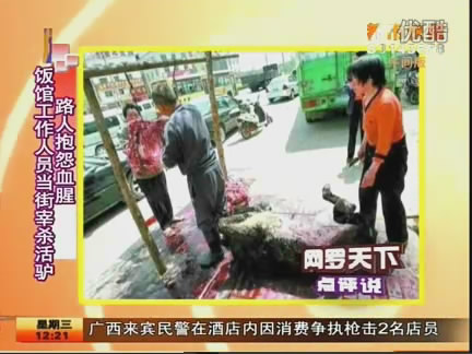 位于鄭州市南三環(huán)與長(zhǎng)江東路交叉口北側(cè)路南的一家飯館,正在當(dāng)街宰殺活驢,場(chǎng)面非常血腥,十分恐怖。