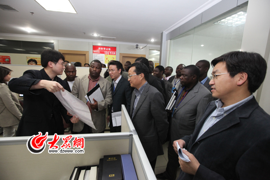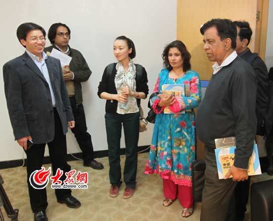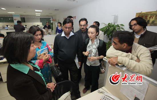 大眾網(wǎng)濟南4月21日訊 4月21日下午,馬拉維議會媒體與通訊委員會議員研修班和巴基斯坦主流媒體考察團先后來到大眾網(wǎng)參觀考察。國務(wù)院新聞辦干部培訓(xùn)局局長胡偉平,山東省委外宣辦主任、省政府新聞辦主任李建軍,大眾報業(yè)集團黨委常委、副總編輯趙念民,大眾網(wǎng)董事長、總經(jīng)理林忠禮,大眾網(wǎng)總編輯朱德泉等分別陪同考察。