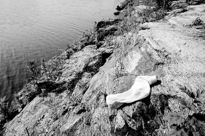 孩子出事被淹沒的河岸邊,還殘留著一只襪子。
