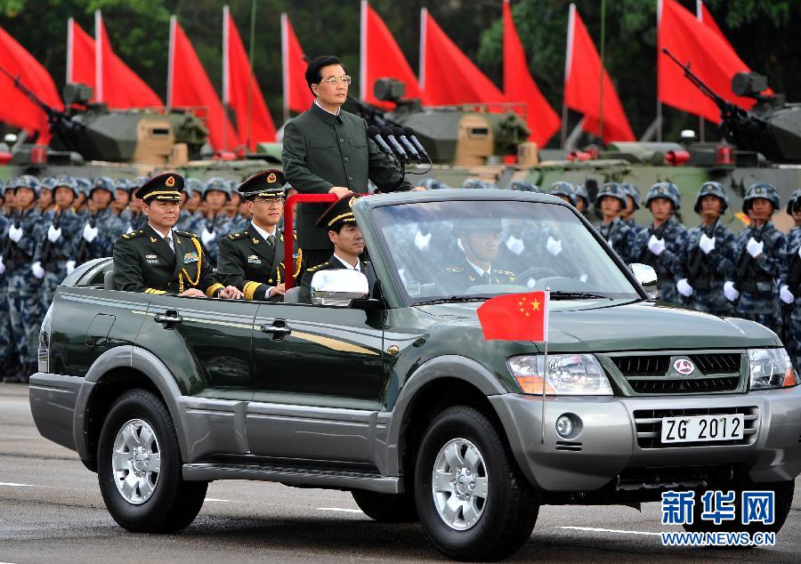 6月29日,中共中央總書記、國家主席、中央軍委主席胡錦濤在香港石崗軍營檢閱中國人民解放軍駐香港部隊(duì)。 新華社記者陳曉偉攝
