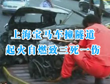 上海寶馬車撞隧道起...