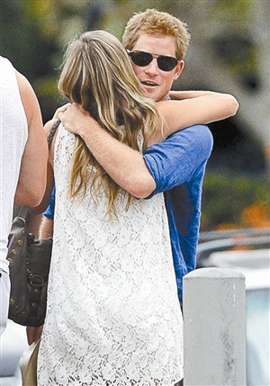 在裸照曝光僅1個(gè)小時(shí)之后,哈里就離開拉斯維加斯前往洛杉磯。在那里,哈里王子被記者拍到與一名金發(fā)女郎會(huì)面。哈里當(dāng)時(shí)身穿藍(lán)色上衣,戴著乳白色闊邊草帽和墨鏡,在洛杉磯一間停車場(chǎng)與朋友閑聊,并同一名神秘的金發(fā)女郎相擁。