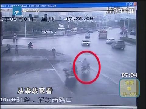 監(jiān)控記錄電動(dòng)車闖紅燈被撞瞬間