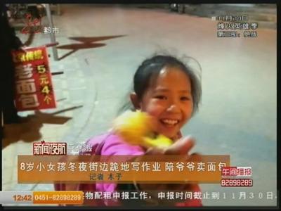 女孩街邊跪地寫作業(yè) 陪爺爺賣面包
