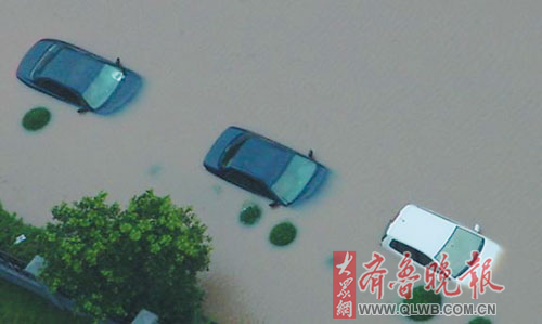 山大路上,多輛汽車險遭滅頂! ”緢笥浾摺O曉曼 攝